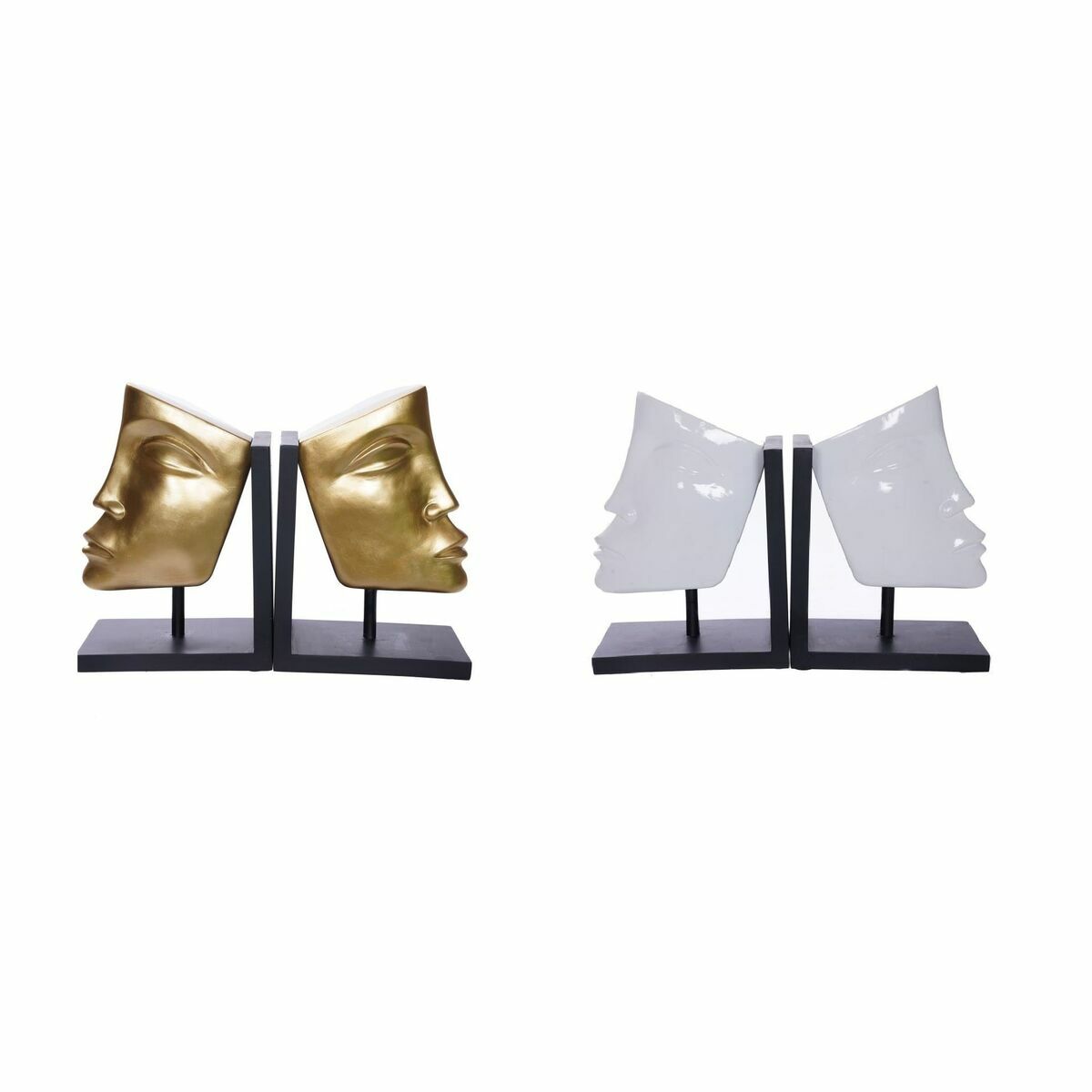 Bookend DKD Home Decor White Golden Resin Modern Face 30,5 x 10 x 22 cm (2 Units)