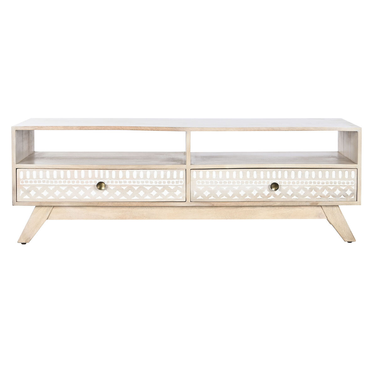 TV furniture DKD Home Decor White Natural Mango wood 130 x 40 x 45 cm